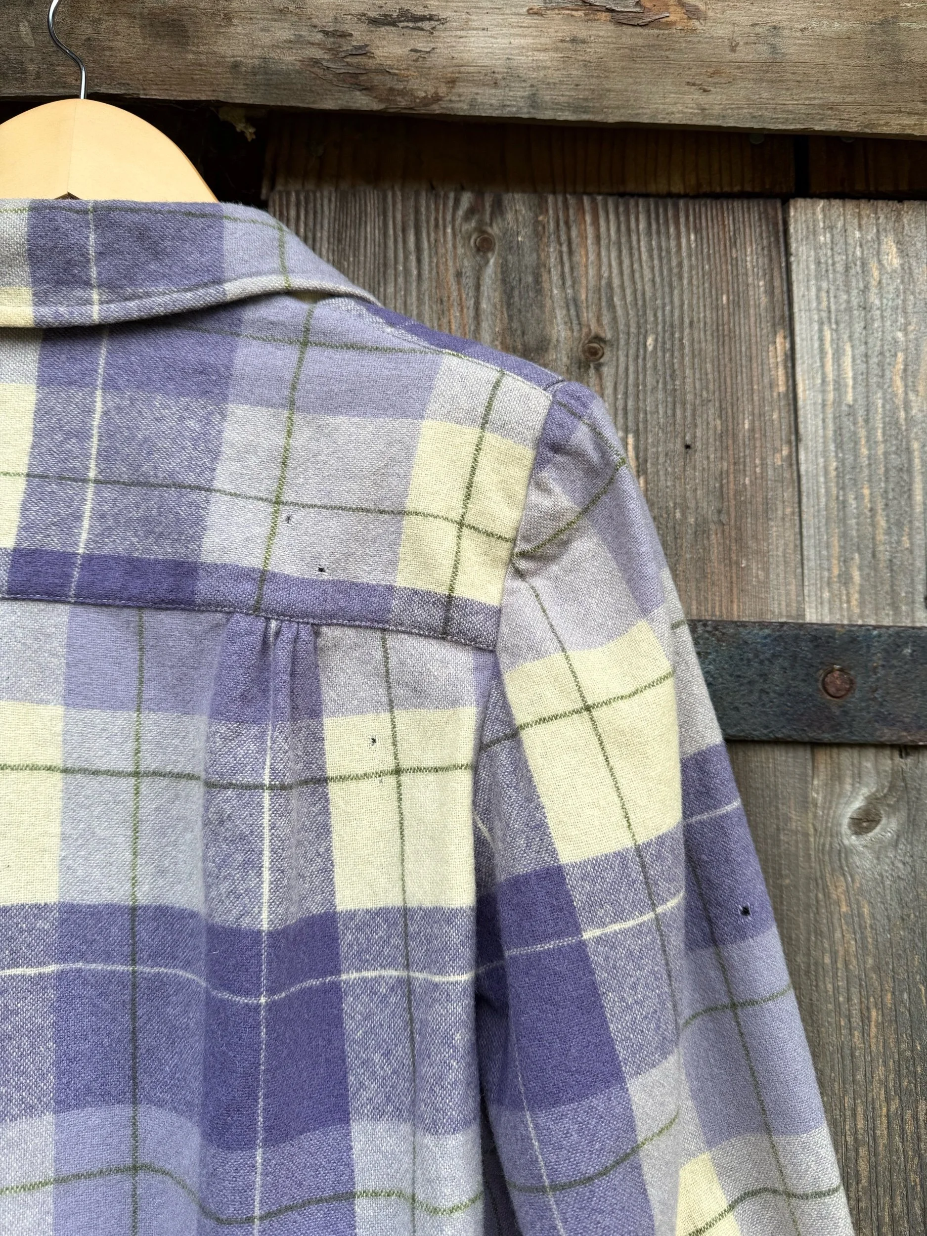 plaid blazer with matching light purple skirt