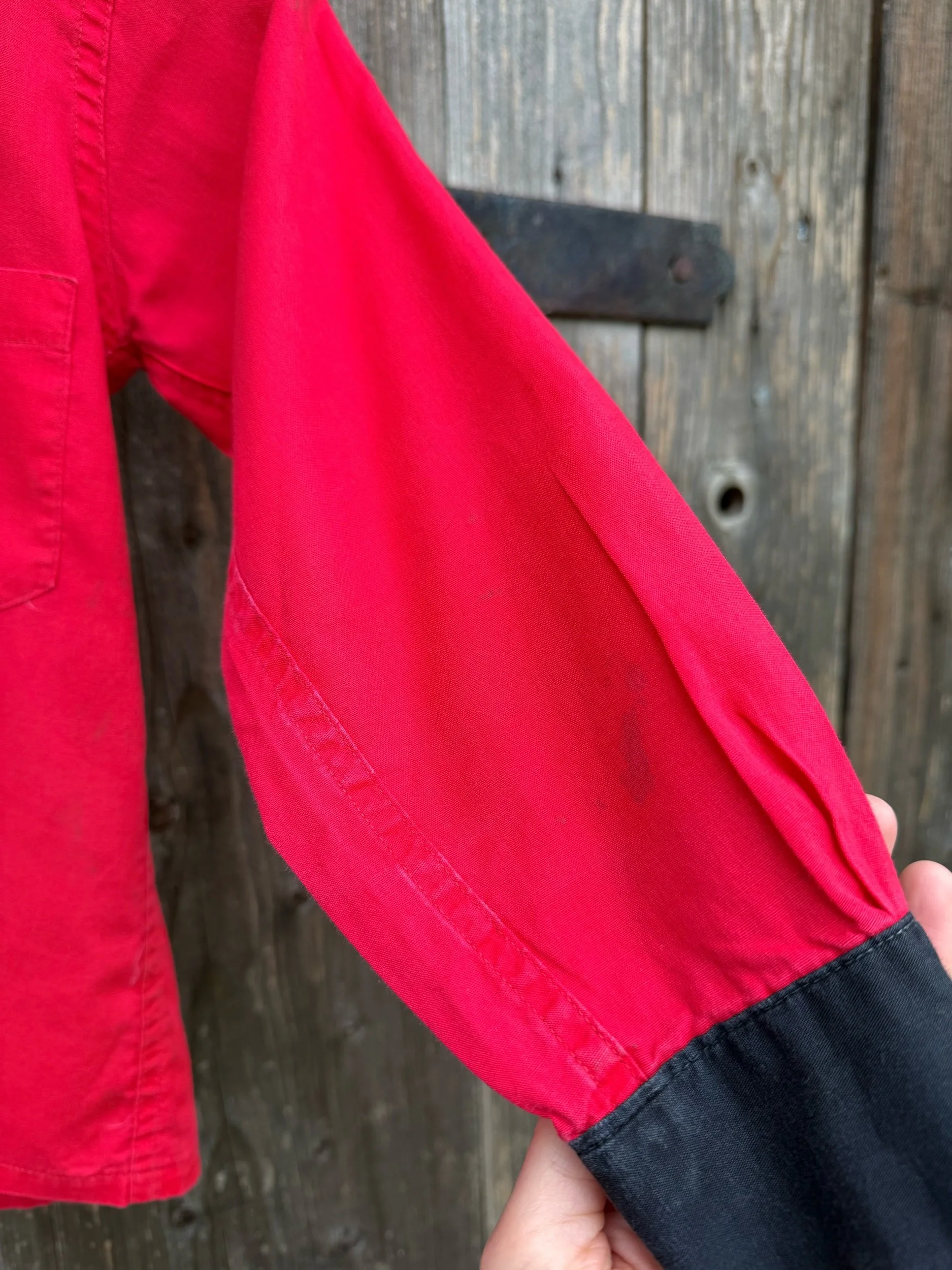 100% cotton in vivid red with black yokes